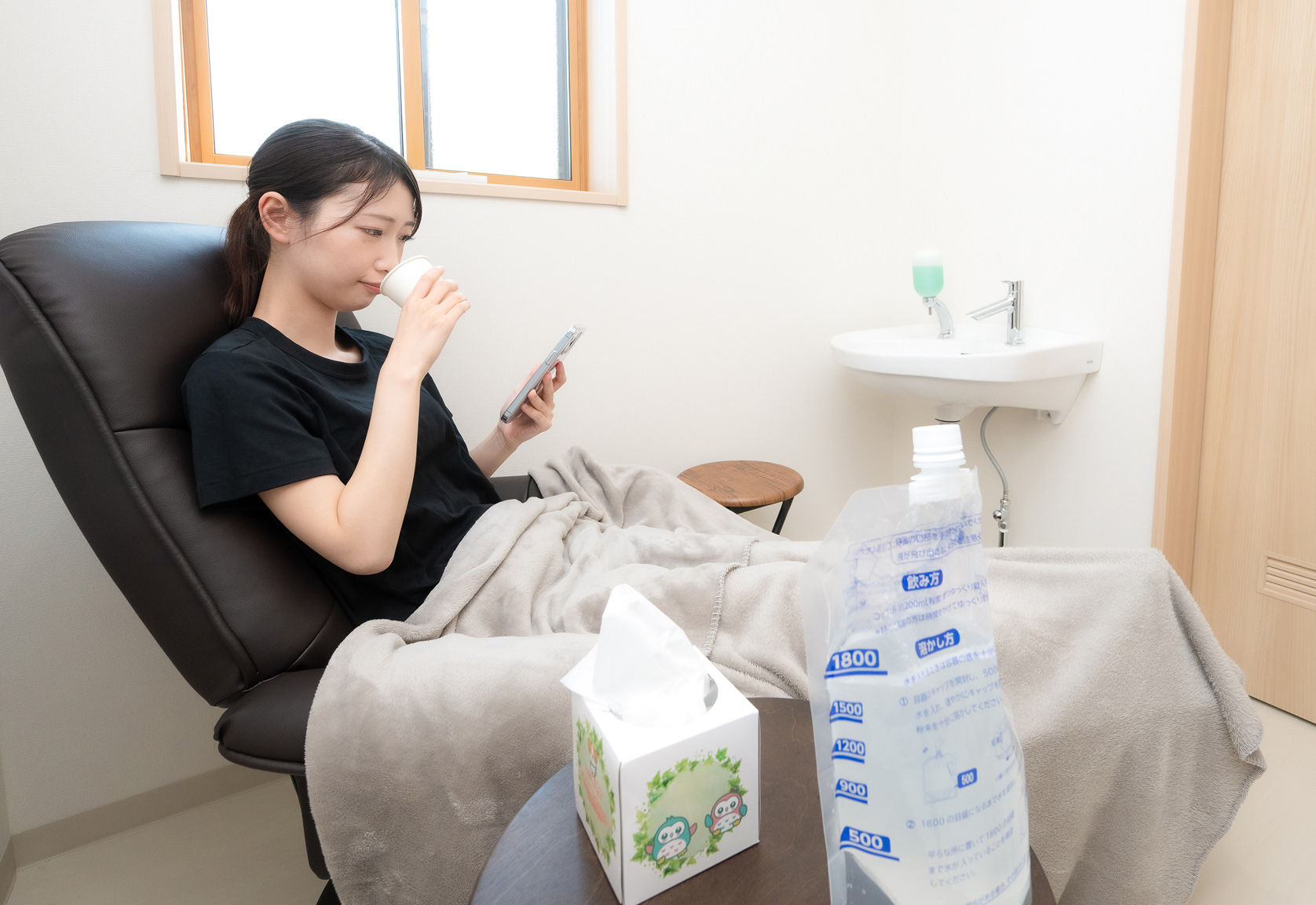 鼻からスコープを挿入する経鼻内視鏡検査は口から行う検査に比べてスコープも細く咽頭反射がないためスムーズに検査が受けられます。鎮静剤も使用しない為、検査後もすぐにご帰宅いただけます。